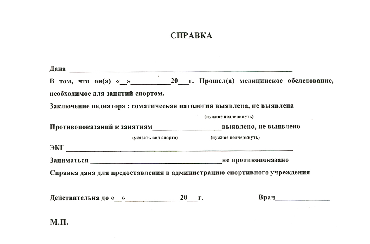 Стоимость справки по форме 073 для занятий спортом составит 800 рублей